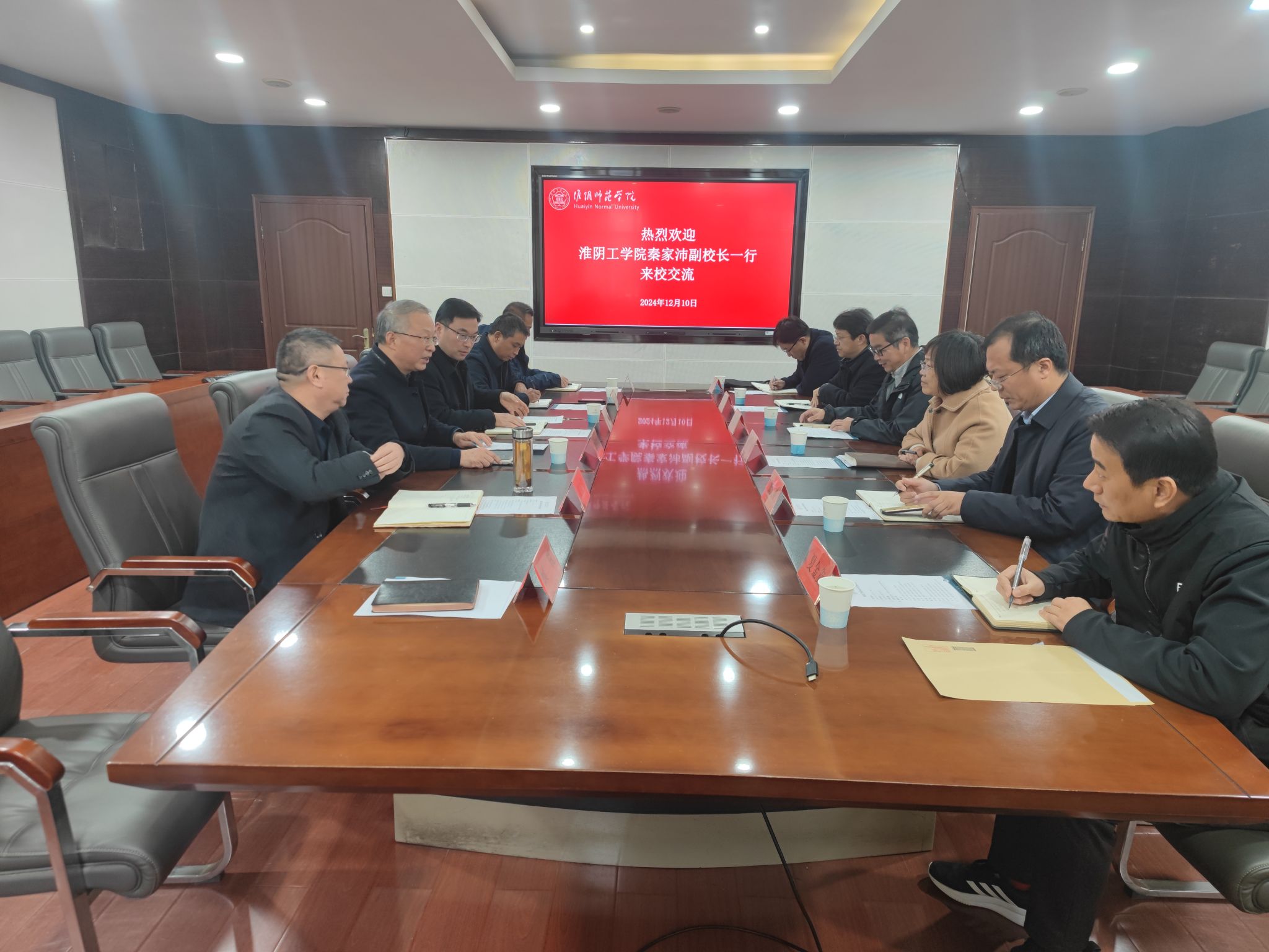 12月10日下午,淮阴工学院副校长秦家沛一行来淮师调研交流。副校长陈春雷在校办会议室接待来宾。