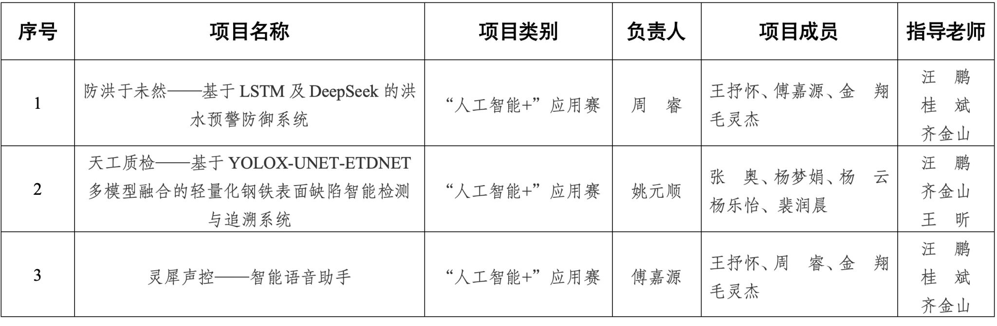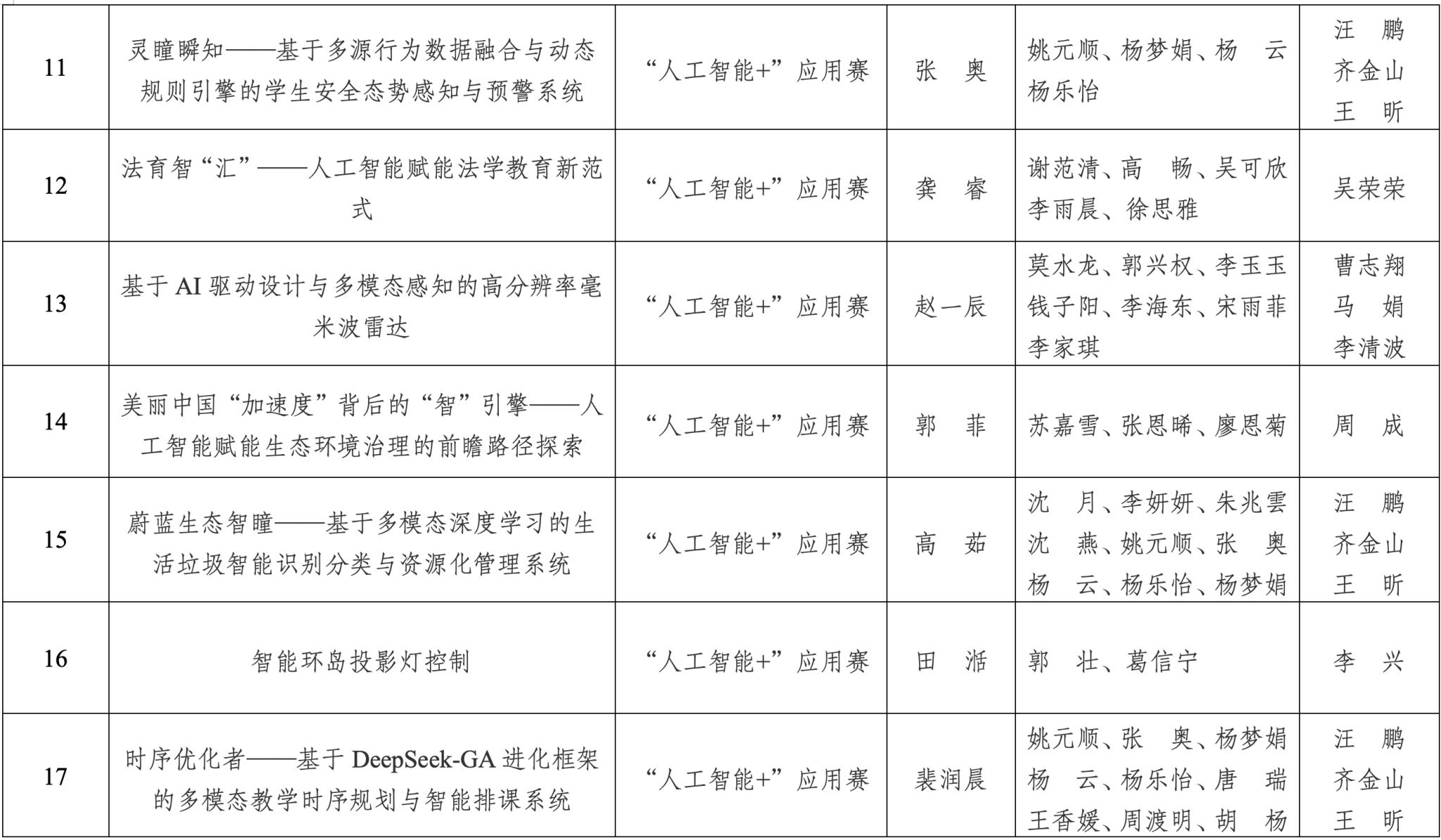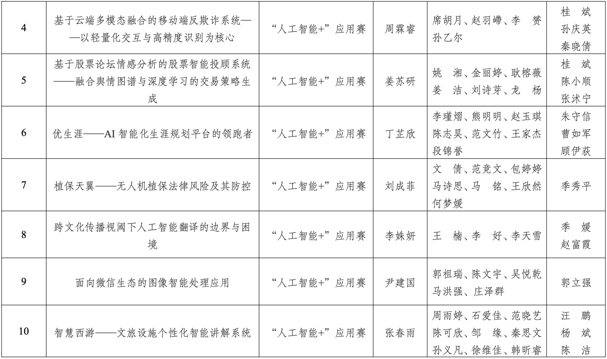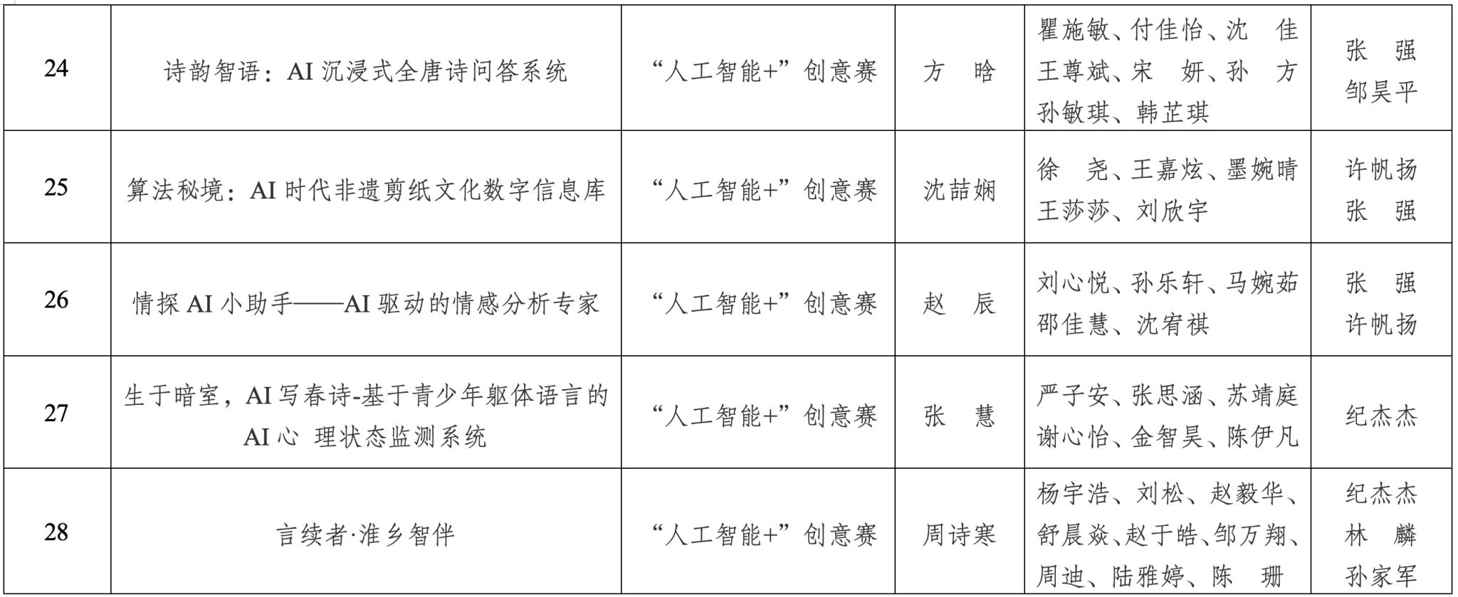根据《关于组织参加第十九届“挑战杯”全国大学生课外学术科技作品竞赛“人工智能+”专项赛的通知》要求及“挑战杯”赛事规程,现拟推荐“人工智能+”应用赛赛道23件作品、“人工智能+”创意赛赛道5件作品参加第十九届“挑战杯”全国大学生课外学术科技作品竞赛“人工智能+”专项赛。现将拟推报项目予以公示。