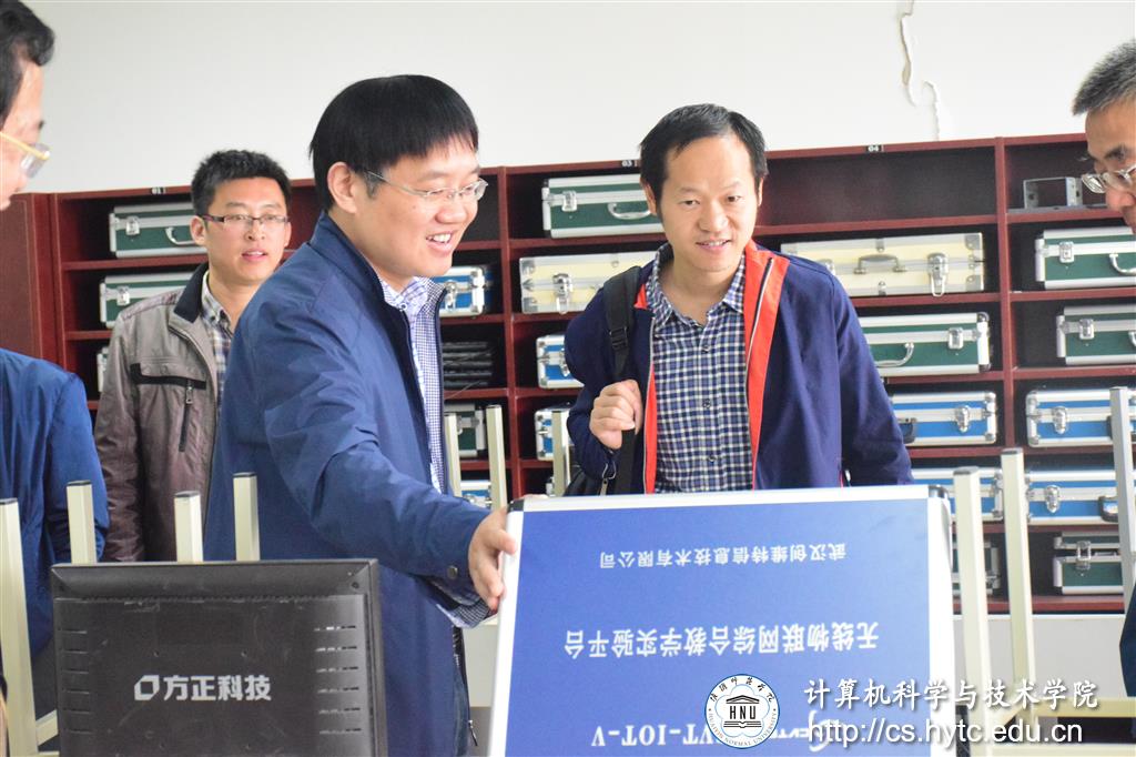 图为教师代表向专家介绍物联网教学实验平台
