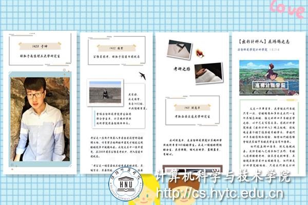 传承回声。为树立优秀毕业生的榜样示范作用,学院在官方微信公众平台上创建“出彩计科人”栏目,对学院优秀毕业生的学习心得体会进行推送。他们对自己大学四年的学习生活进行了回顾,然后着重叙述了自己的求职求学经验和方法,希望给学弟学妹们提供帮助。此外,学院还自发组织了旧书旧物回收活动,鼓励毕业生将自己不用的旧书和旧物赠送给需要的同学,用自己力所能及的事情传承爱心,回馈母校培育之情。