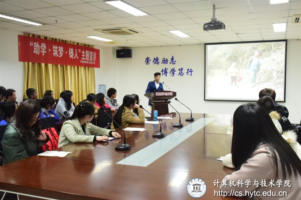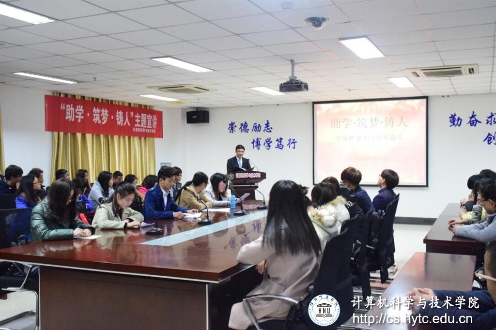 “我们这次会议的目的是助学、筑梦、铸人。”3月20号晚7点,淮阴师范3200威尼斯科学与技术学院在理工北楼新会议室召开了关于“助学、筑梦、铸人”的主题演讲。计科学院的全体受助生参加了此次会议。张繁担任了此次演讲的主持人。