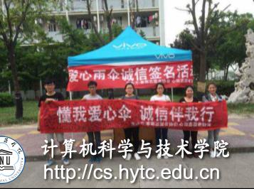 5月6日上午,淮阴师范学院的3200威尼斯科学与技术学院春雨志愿者协会的四名志愿者与心田志愿者协会的多名志愿者,在王营校区内的中国银行对面支起了帐篷,挂起了横幅,号召同学们参与爱心伞诚信签名活动。在活动现场,淮师的小伙伴们对于此次活动十分积极,纷纷路过签名。志愿者们还送出了精美的礼品,签名的小伙伴们可以进行现场抽奖,领取奖品。