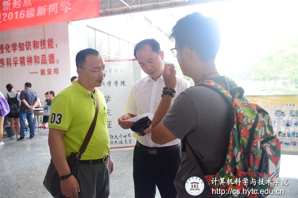 计科的迎新工作,除了辅导员和高年级学生,负责教学科研工作多位专业课教师也参与其中,他们和学工老师一起,分别从专业简介(课程设置)、师资队伍介绍、学生工作概况、生活小助手、小贴士等方面对前来报道的新生作了介绍,不仅让新生更全面地了解学院,尽快熟悉环境,也更高效的发挥了骨干教师的引领和辐射作用,搭建了师生沟通的有效平台,提高了新生入学教育的实效性。