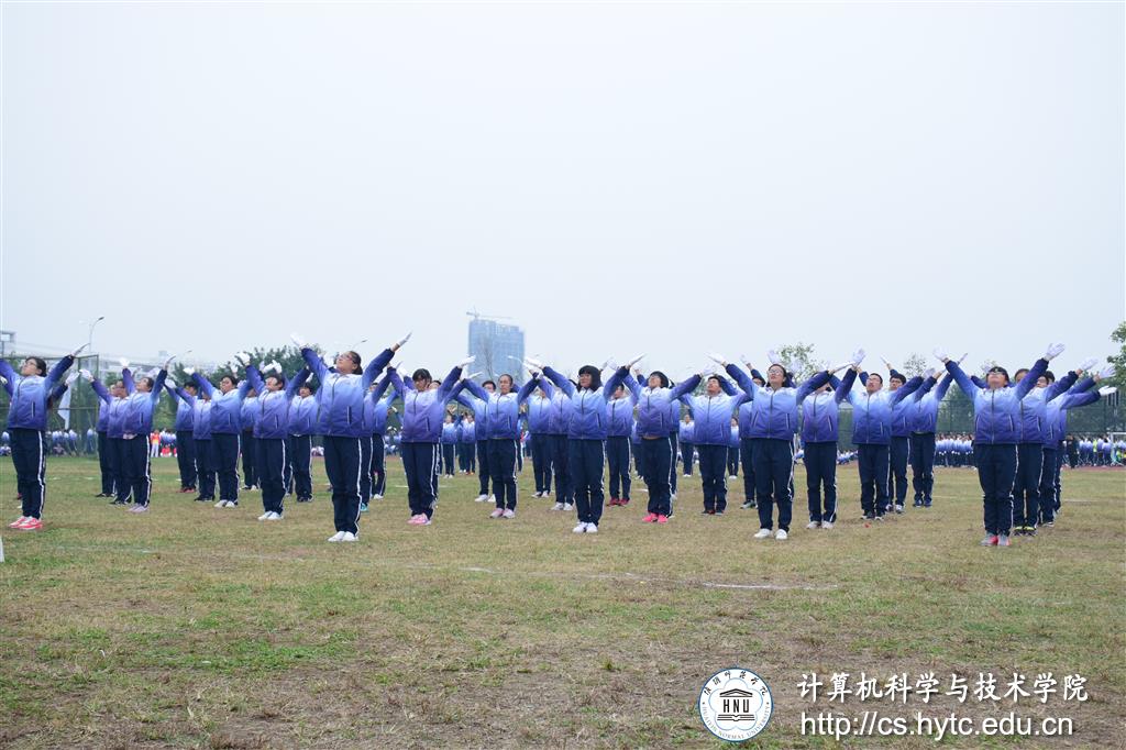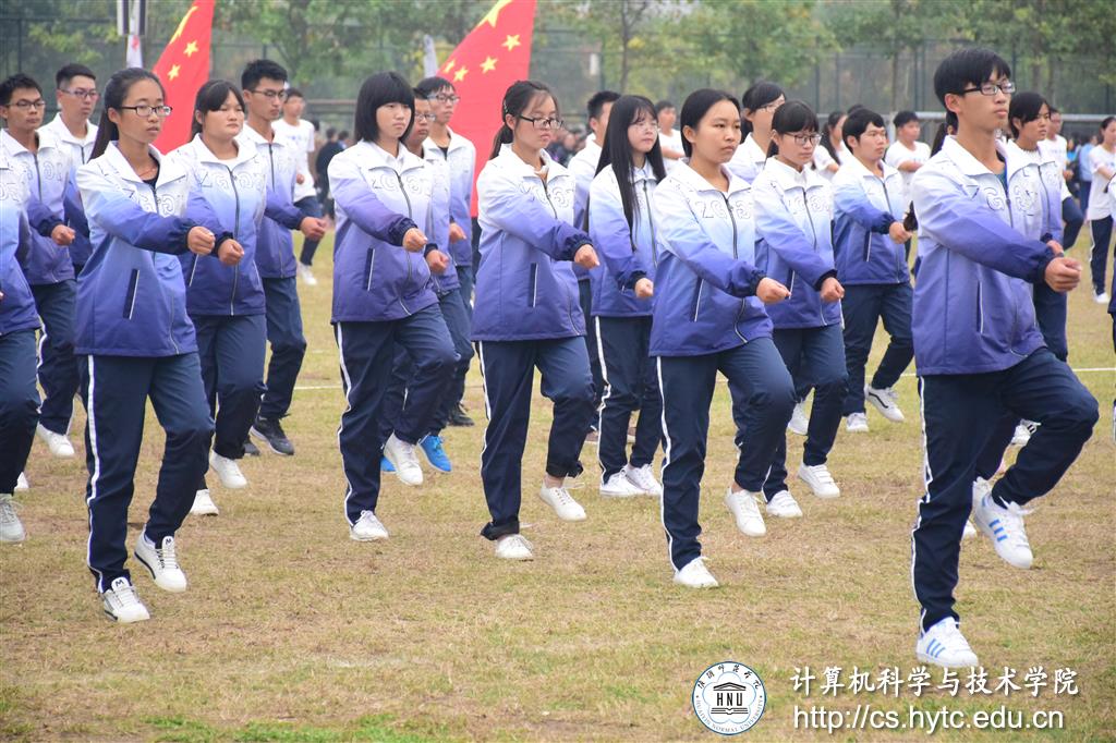 操场上,放眼望去,计科学子身着统一的服装,昂首挺胸,动作娴熟,激情四扬,独成一道风景线。随着音乐声响起,在充满韵律的音律中,计科学子充满自信、精神饱满,伸臂、扩胸、踢腿、旋转、跳跃等动作更是走进在场人员的心中。响亮的口号、强劲的动作、整齐的步伐无不展现计科莘莘学子的无限分光。淮师的操场上处处洋溢着青春的气息。