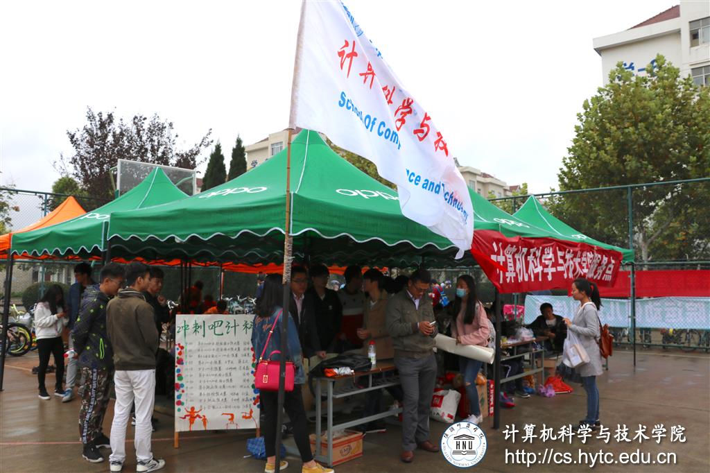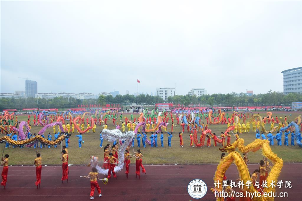 雄壮的运动员进行曲、绚丽的摆手舞、美妙的扇子舞、壮观的舞龙舞狮、步伐整齐的方阵构成了令人难忘的开幕式表演。穿着统一的紫白校服的计科学子们,神采飞扬,整齐划一的步伐纵横跑道,响亮的口号响彻操场的每个角落,展示着计科学子们昂扬的精神面貌。在舞蹈、方阵等精彩的表演后,淮师运动会正式开始。