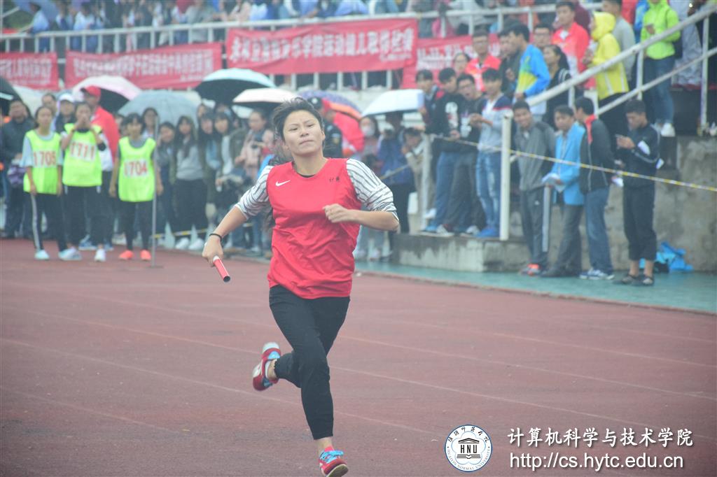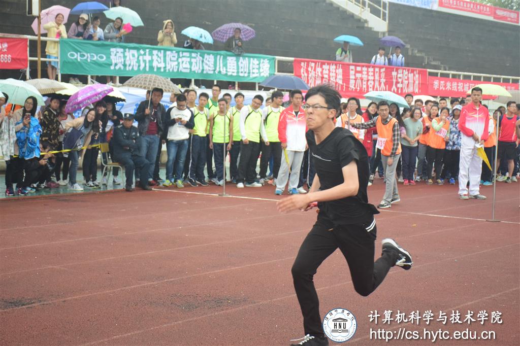 激烈的运动场上,计科学子正在顽强拼搏,绵绵的细雨中,计科学子正在努力奔跑。红色的跑道上,10*60米的团体接力赛正在如火如荼地进行着,默契的配合、张扬的笑脸、明亮的双眸都是计科学子对运动精神最好的阐释。在男子跳高预决赛中,计科16级学生徐业成展现了他惊人的弹跳力,一次次跃起、一次次落地、一次次成功都给予了他很大的信心,不算宽阔的臂膀却能撑起自己的一片蓝天。