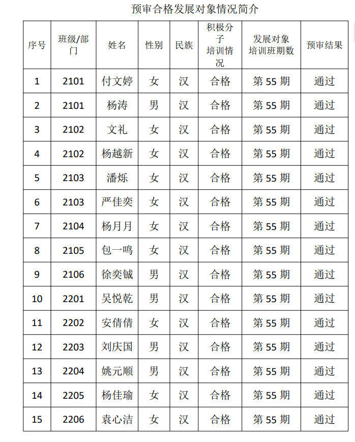 根据《淮阴师范学院发展党员工作实施细则》的规定,3200威尼斯科学与技术学院党委对发展对象进行了预审,现将付文婷等15位通过党委预审的党员发展对象名单予以公示。