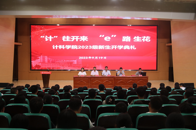 9月19日晚,计科院以“‘计’往开来,e路生花”为主题,在崇文106报告厅隆重举行2023级新生开学典礼。典礼中,全院所有教师和2023级全体新生欢聚一堂,共同欢迎285名新同学的到来,并为他们在专业学习、品德修养、技能锻炼等方面提目标、明方向。